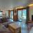 Das Wohn- und Esszimmer bietet einen modularen Lebensraum, der sich um einen zentralen Tisch und ein großes Sofa gliedert. Drei große Erkerfenster bieten eine außergewöhnliche Aussicht und eine helle Atmosphäre. Ein zweites Wohnzimmer mit einer Bank, die in ein Bett umgewandelt werden kann, und eine angrenzende Dusche vervollständigen den Wohnraum. Die Toiletten und eine große Eingangshalle sind ebenfalls vorhanden.