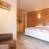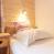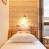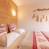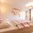- ein Zimmer mit 1 Einzelbett und 2 Etagenbetten, jeweils mit zwei Kopfkissen und einer Bettdecke 140 x 200 ausgestattet. Das Zimmer ist mit einem Tisch und zwei Stühlen, einem Schrank und einer Kommode ausgestattet.
