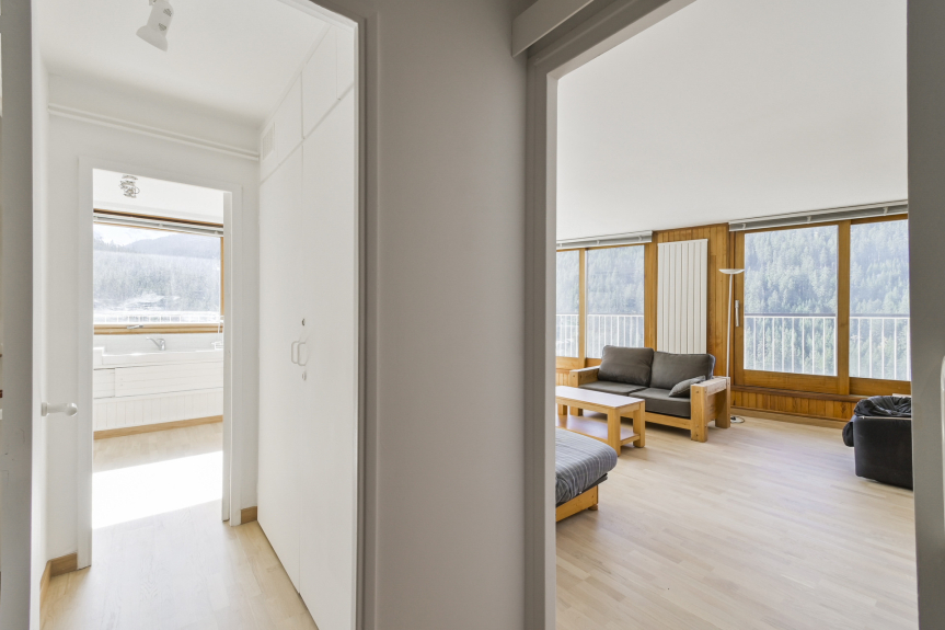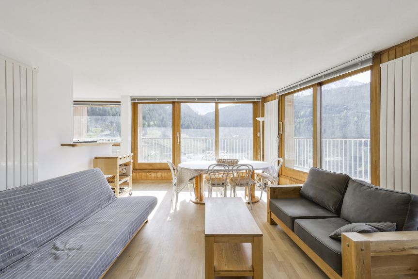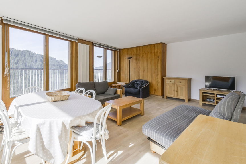 4-Zimmer-Wohnung von 95m² ski in ski out für 8 Personen, im 7. Stock der Residenz mit Lift.