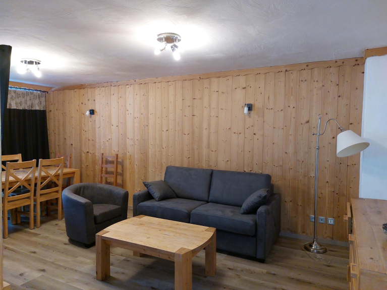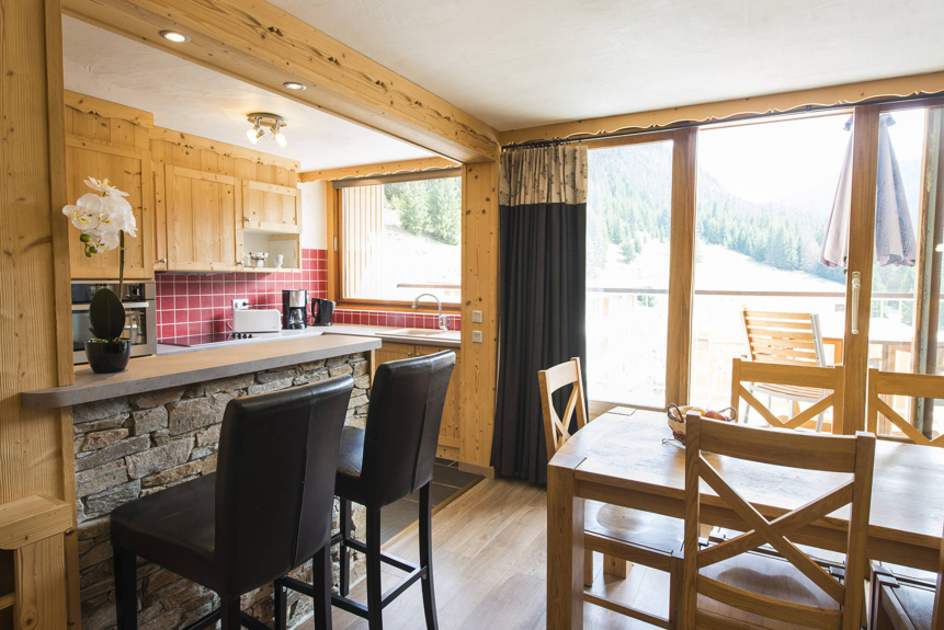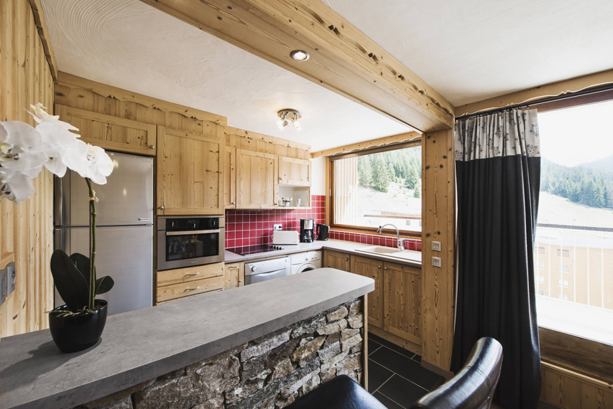 Ski-in/Ski-out Wohnung, klassifiziert 3* und mit dem Label "Montagne de Charme", von 72m² für 8 Personen, im 5. Stock der Residenz "Domaine de l'Ariondaz" mit Lift und Balkon nach Westen, Blick auf die Berge.