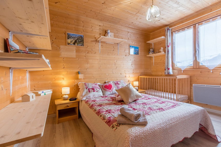 - Ein Schlafzimmer mit 1 Bett à 140 cm + 2 Betten à 90 cm + 1 Babybett ;