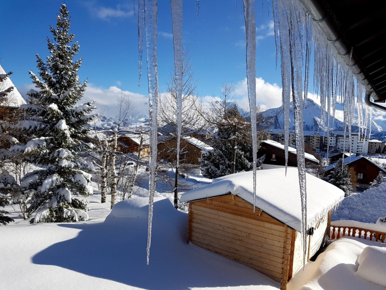 Eine wunderschöne, begrünte Terrasse auf Balkonhöhe bietet Ihnen einen atemberaubenden Blick auf die Aiguilles d'Arves sowie auf die Pisten und umliegenden Gipfel.