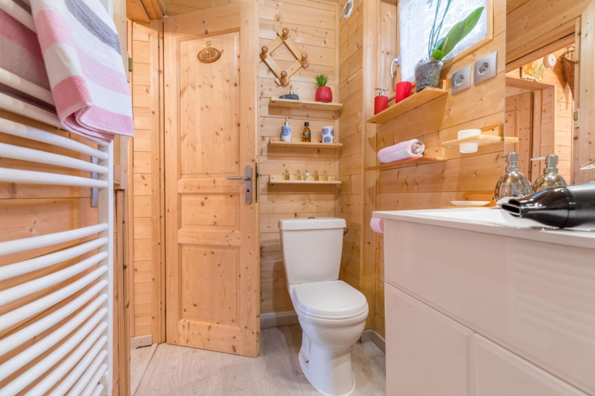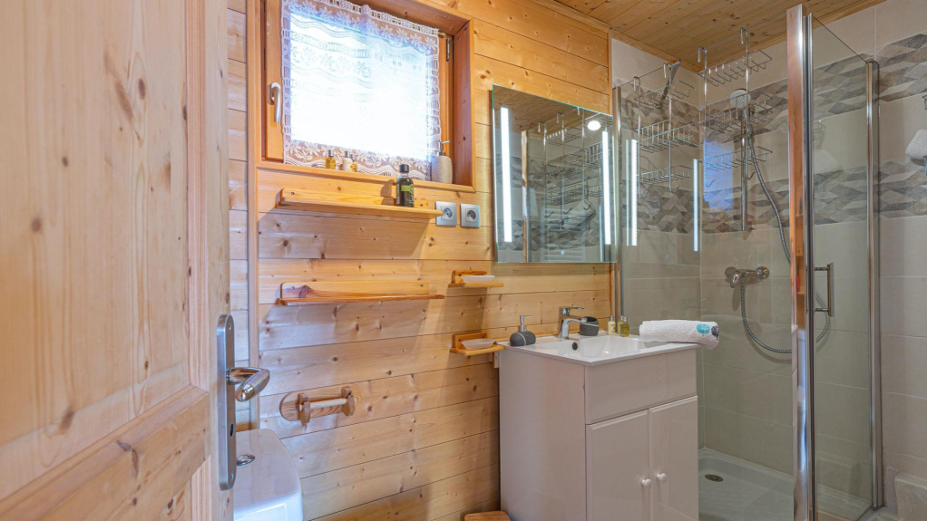Dieses Erdgeschoss gehört zu einem individuellen Chalet mit den beiden anderen Wohnungen: einem Studio mit einer Fläche von 24 m2 und einem Duplex mit einer Fläche von ca. 200 m2 mit Nebengebäuden.