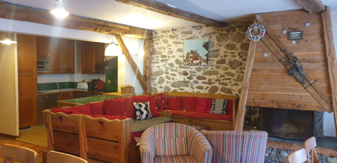 Wohnung für 14 Personen im Zentrum eines Skigebiets, mit 4 Sternen bewertet, Kamin, Sauna, Erdgeschoss, 20 Quadratmeter Skiraum, Skiausrüstung, Fahrräder, Motorräder usw., angelegter Garten, Tische und Stühle, Sonnenschirme, Grill, 50 Meter vom Mietobjekt entfernt in einer ruhigen, sonnigen Gegend umgeben von Gärten.