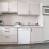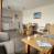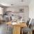 Offene Küche mit 4 Induktionskochplatten, Kühlschrank, Backofen, Mikrowelle, Geschirrspüler.