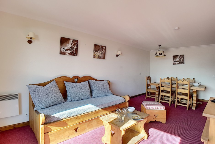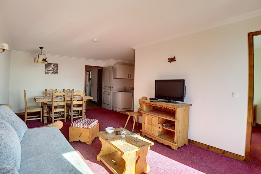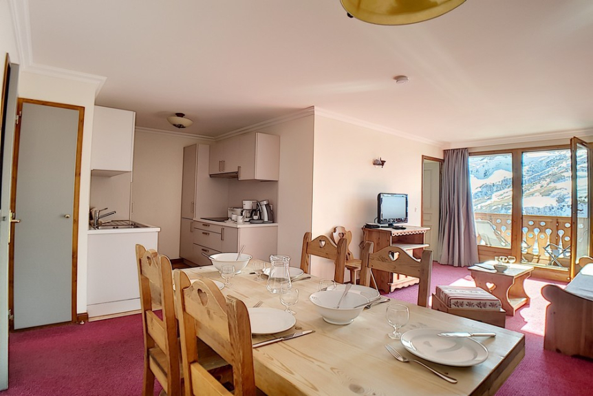 Schöne, geräumige 3-Zimmer-Wohnung mit 50 m² für 6 Personen. Sie befindet sich im 1. Stock des Wohnheims und hat einen Südwestbalkon. (Gebäude Cristaux 1)