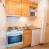 Küchenzeile: Elektroherd, Backofen, Mikrowelle, Kühlschrank und alle notwendigen Geschirrteile