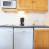 Kochnische: Elektroherd, Ofen, Mikrowelle, Kühlschrank, Geschirrspüler und alle notwendigen Geschirrteile