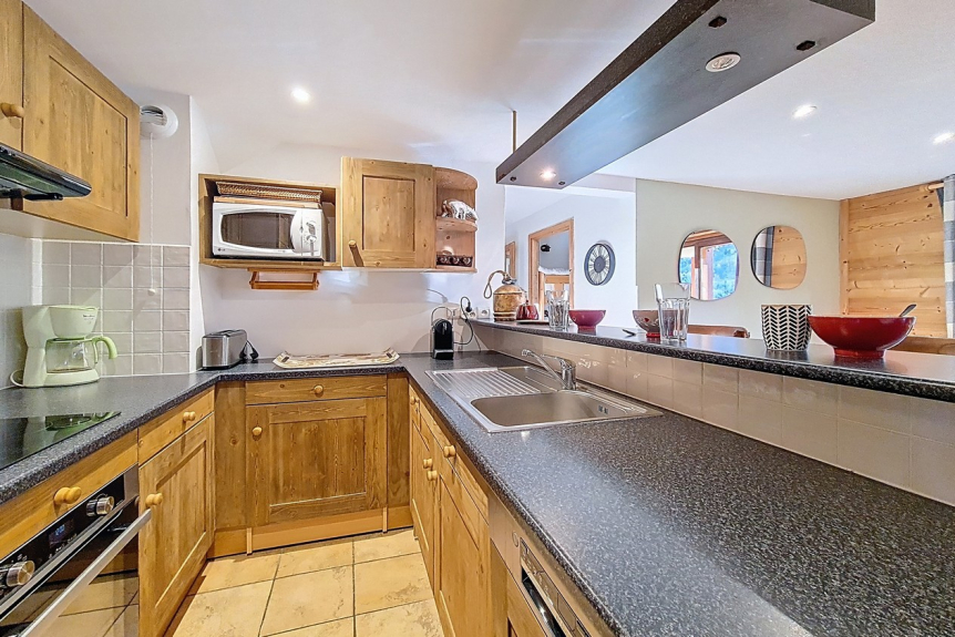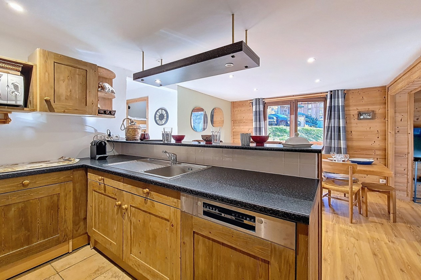 Küche: offen und ausgestattet mit 4 Induktionskochplatten, Dunstabzugshaube, großem Kühlschrank mit separatem Gefrierfach, Backofen, Mikrowelle, Geschirrspüler, Kaffeemaschine, Toaster, Wasserkocher, Nespresso-Kaffeemaschine, kombiniertem Pierrade/Raclette und Fondueset.