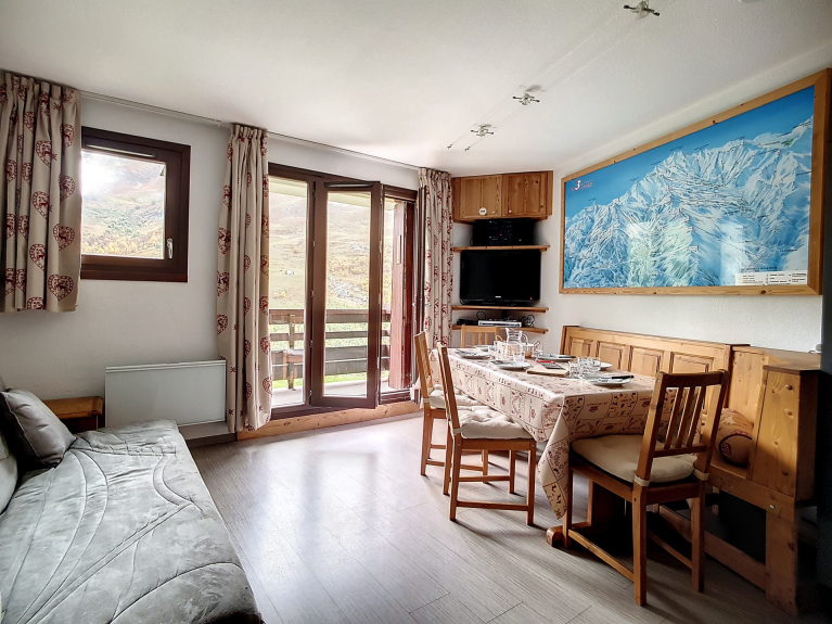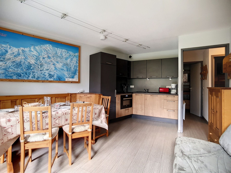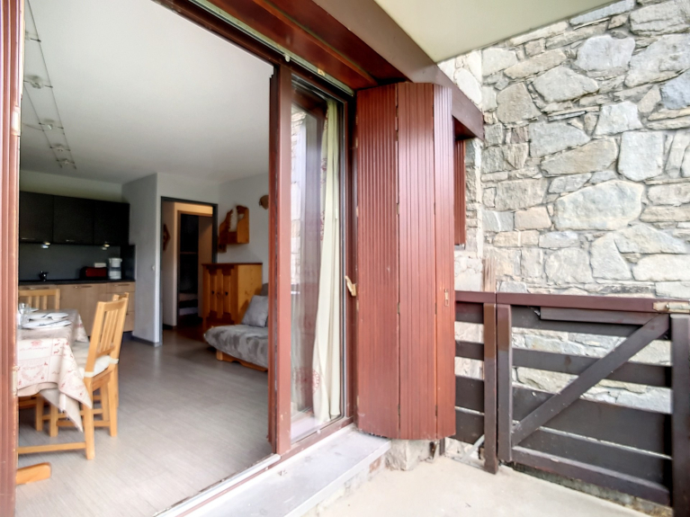 Angenehme Zweizimmerwohnung mit Kabine von 35 m² für 6 Personen. Sie befindet sich im Erdgeschoss und verfügt über einen Balkon mit Westausrichtung.