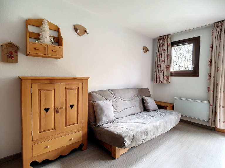 Wohnzimmer: 1 Clic Clac für 2 Personen. Ausgestattet mit Fernseher, DVD-Player und HI-FI-Anlage.
