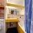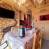 Kabine durch einen Vorhang vom Wohnzimmer getrennt: 2 Etagenbetten.