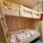 Durch eine Tür abgeschlossenes Zimmer: 2 Etagenbetten und 1 Einzelbett.