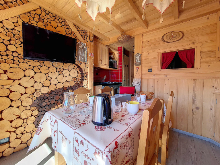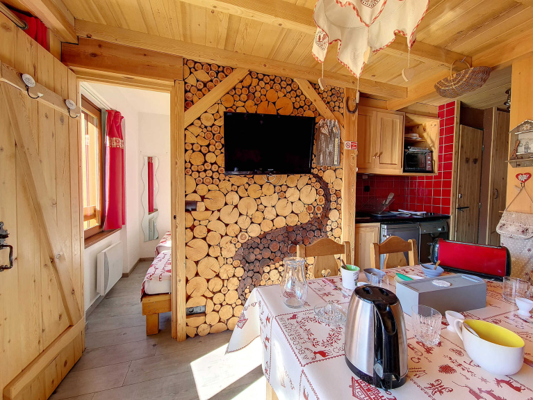 Sie hat einen direkten Zugang zu den Pisten und verfügt über einen reservierten Parkplatz.