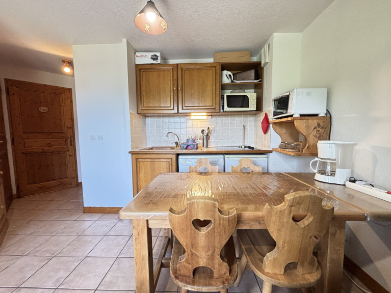Gemütliche 26m² große Wohnung für vier bis sechs Personen im ersten Stock der Residenz. Ihr Balkon in Westausrichtung bietet Ihnen einen herrlichen Blick auf den Mont Charvin und das Tal. Außerdem befindet sich die Wohnung am Fuße der Skipisten und der Startpunkte für Wanderungen!