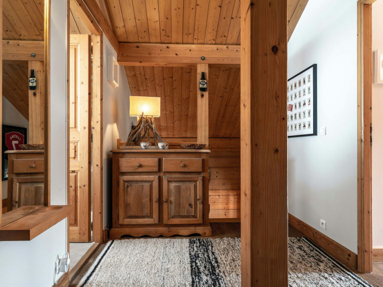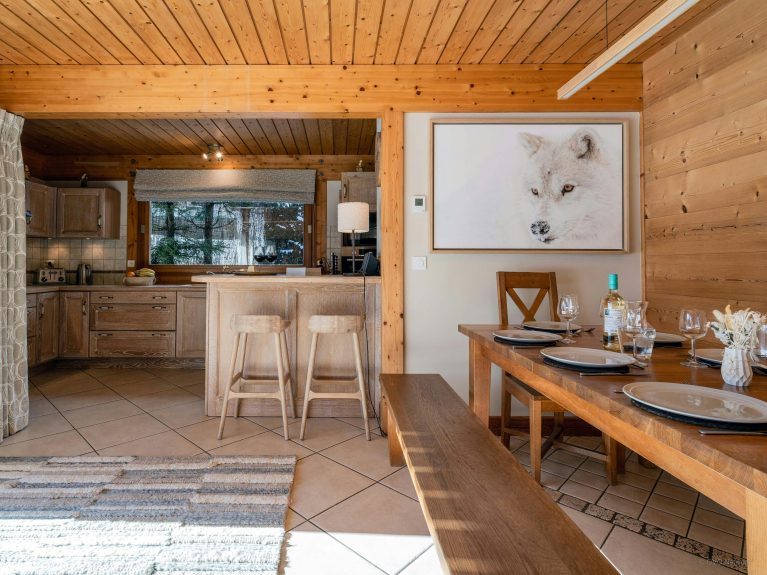 Dieses sehr gut ausgestattete Chalet bietet Platz für 10 Personen in 4 Schlafzimmern (2 Kingsize, 1 Superkingsize und ein viertes mit 2 Etagenbetten für 4 Kinder) und 2 Badezimmern. Bequemes Sofa, Steinkamin, warme Dekoration... Das Erkerfenster des Wohnzimmers gibt den Blick auf eine Holzterrasse und einen schönen Garten frei. Die Küche ist zum Wohnzimmer hin offen. Zwei der Schlafzimmer gehen auf einen großen Balkon, von dem aus Sie den Blick auf das Aravis-Massiv genießen können. Das große Badezimmer hat eine Badewanne, eine Dusche und ein Doppelwaschbecken. Die Toilette ist separat. Die vielen Bücher, Spielsachen und Brettspiele tragen zur familiären Atmosphäre des Chalets bei, in das Sie nach einem anstrengenden Tag gerne zurückkehren werden.
