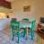 - Zum Wohnzimmer hin offene Küche: 2 elektrische Kochplatten, Minibackofen, Kühlschrank.