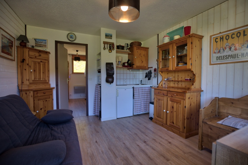 Charmantes 20m² großes Appartement für vier Personen im Gartengeschoss mit einer Südwestterrasse. Sie werden den Blick auf den Mont Charvin und das Tal genießen.