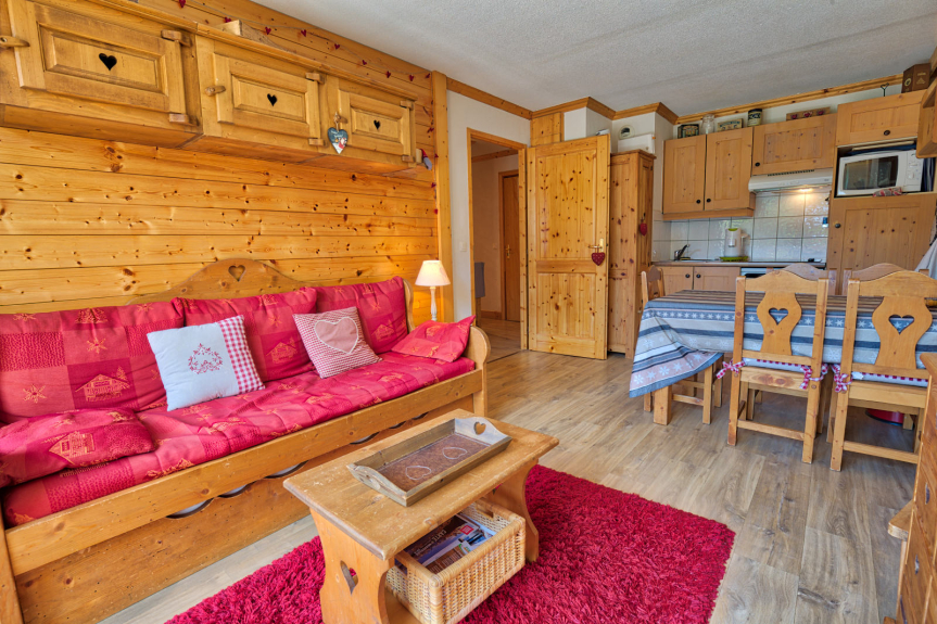 Im Herzen eines typischen Dorfes des Val d'Arly, 57m² große Wohnung im zweiten Stock der Residenz mit einem Südostbalkon mit herrlichem Bergblick. Die Unterkunft befindet sich neben allen Annehmlichkeiten, der kostenlosen Skibushaltestelle und 250m von den Pisten des Espace Diamant und der ESF entfernt. Bis zu acht Reisende können untergebracht werden.