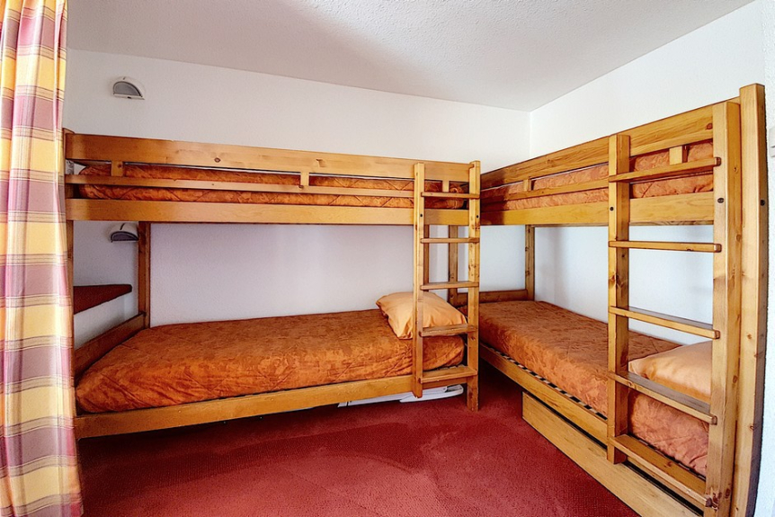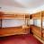Bergecke (durch Vorhang abgetrennt): 1 Einzelbett und 2 Etagenbetten.