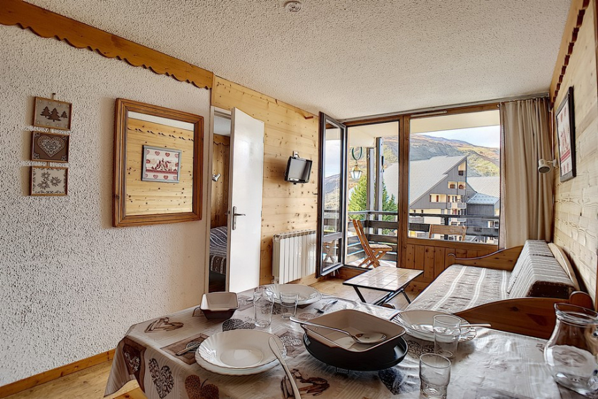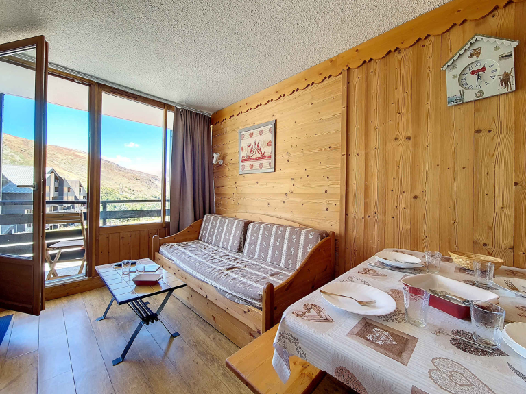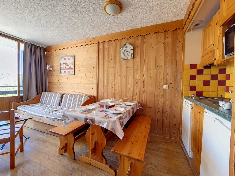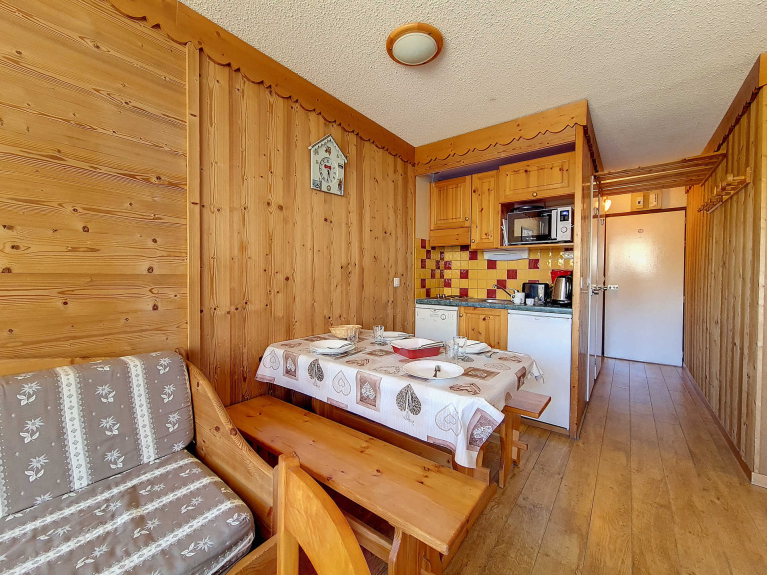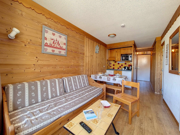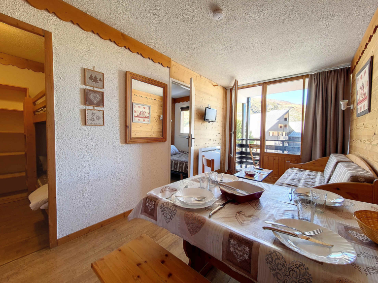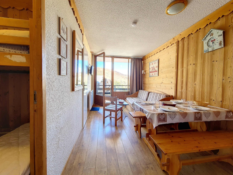 Sehr schöne, komplett renovierte 2-Zimmer-Wohnung + 1 Kabine im Bergstil: 27 m² für 5 Personen.