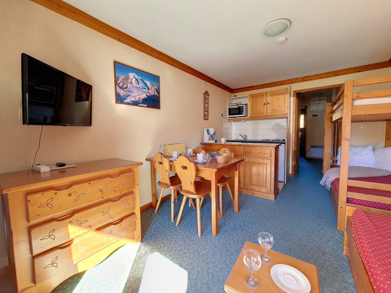 Das Viertel Bruyères verfügt über Restaurants, Geschäfte, eine Touristeninformation, einen Wasser- und Wellnessbereich, ein Kino, einen Schienenschlitten, eine Skischule und einen Kindergarten.