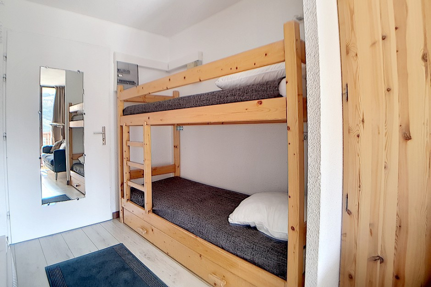 Eingang (nicht vom Wohnzimmer getrennt): 2 Etagenbetten für 1 Person (70 cm).