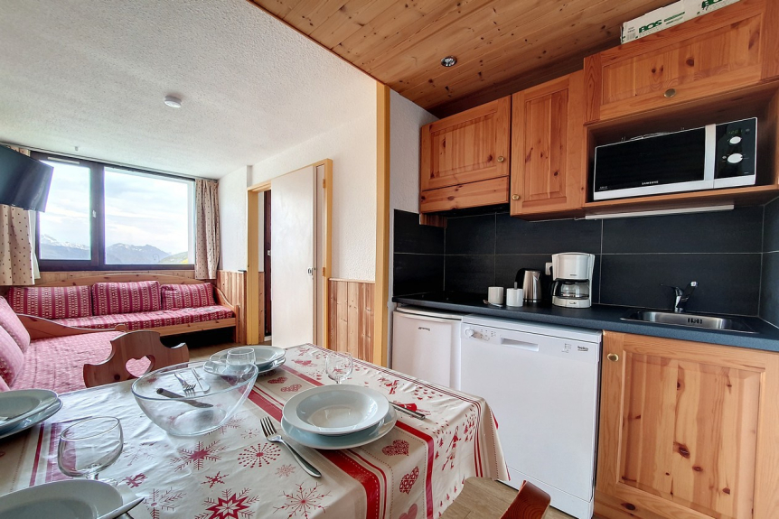 Renovierte Zweizimmerwohnung mit einer mobilen Trennwand von 24m² für 4 Personen. Sie befindet sich im 2. Stock mit Aufzug und hat einen Balkon mit Nordostausrichtung.