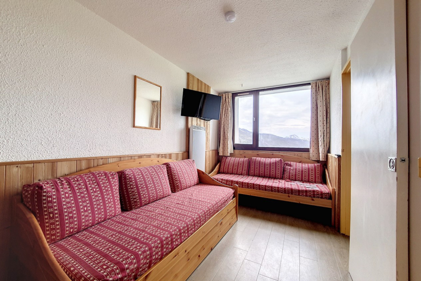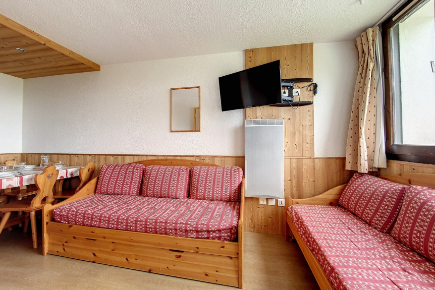 Wohnzimmer: 1 Schlafsofa für 1 Person + 1 hochklappbares Ausziehbett. Ausgestattet mit einem Fernseher.
