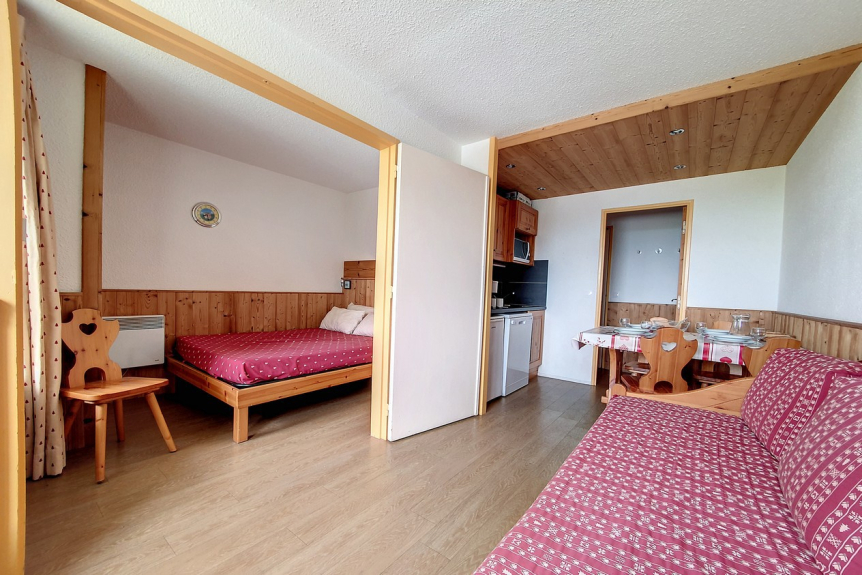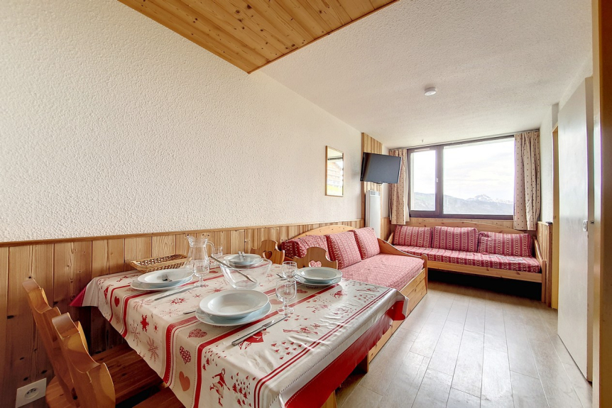 Kostenlose Parkplätze am Fuße des Gebäudes. Geschäfte und Skischule in der Nähe. Die Pisten sind 250 m entfernt.