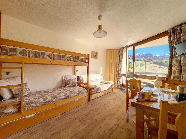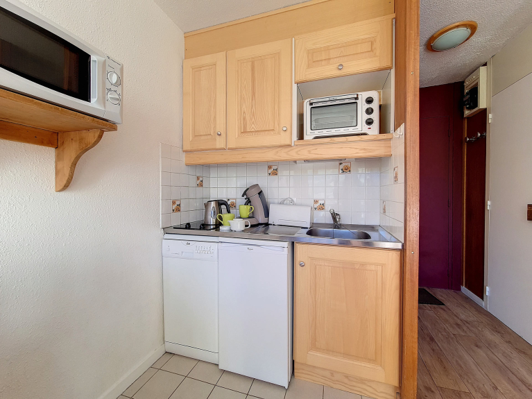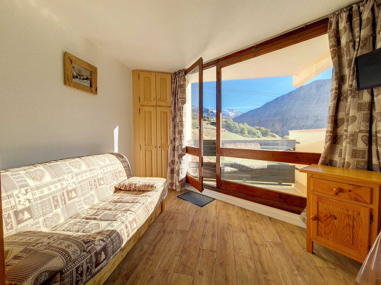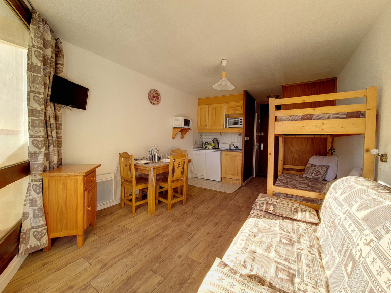 Das 20 m² große Studio für 3 Personen befindet sich im 6. Stock mit Aufzug und hat einen Südbalkon. Eingang Nr. 1