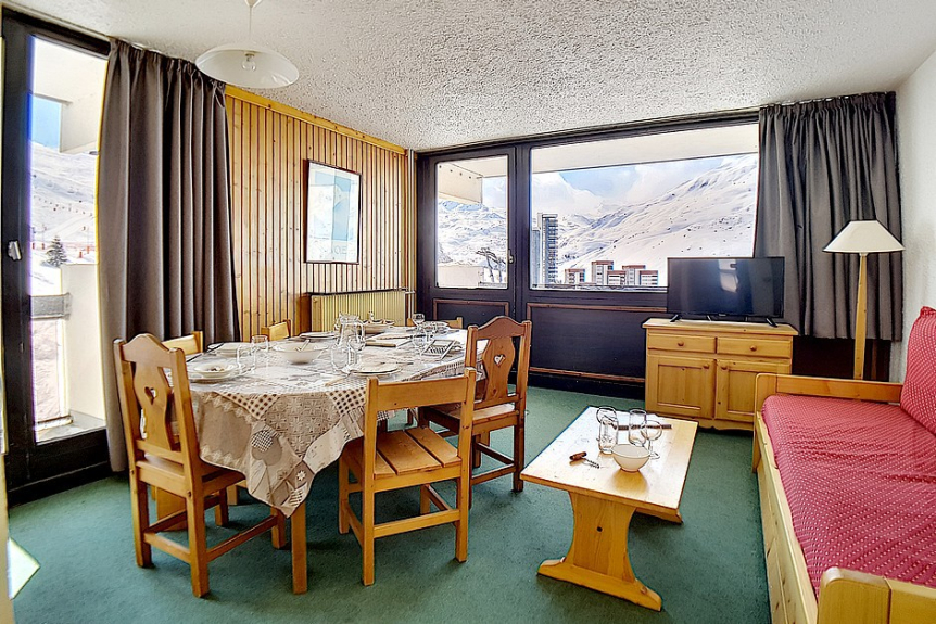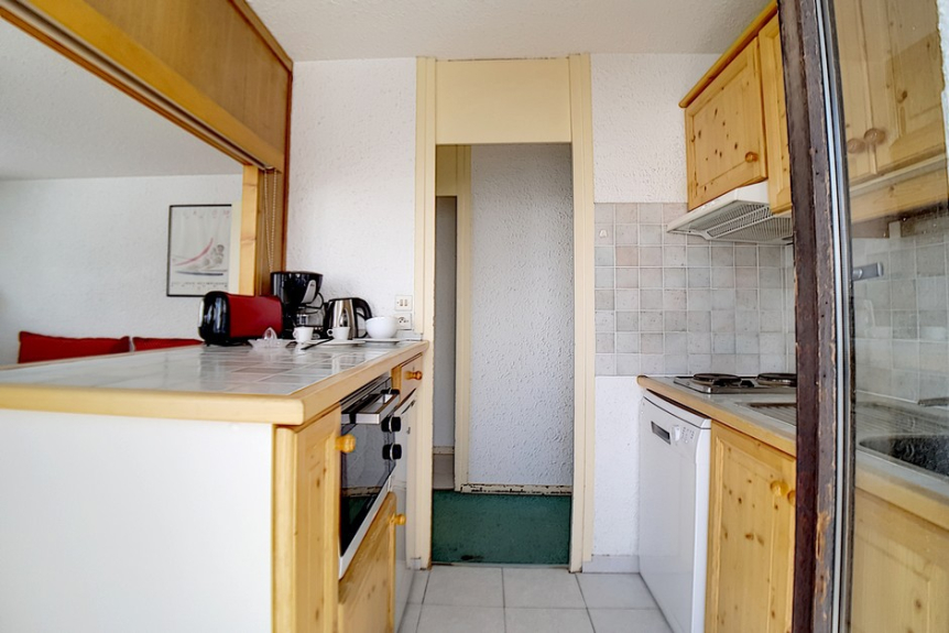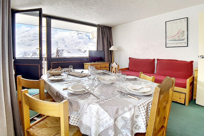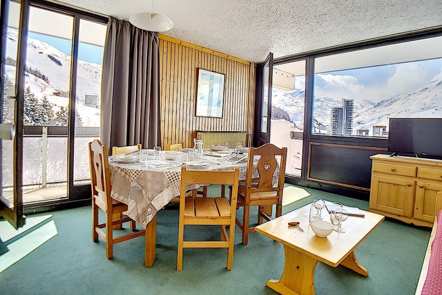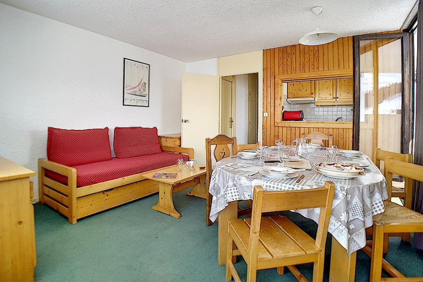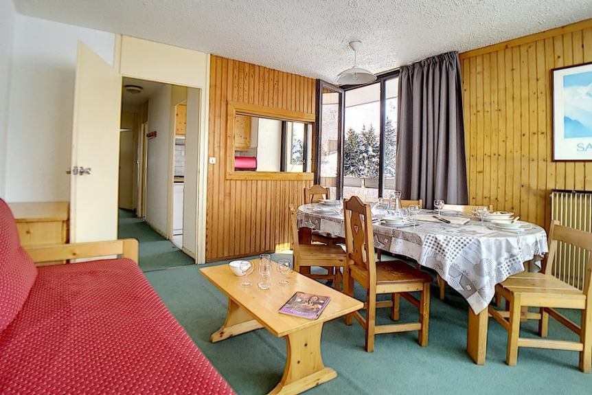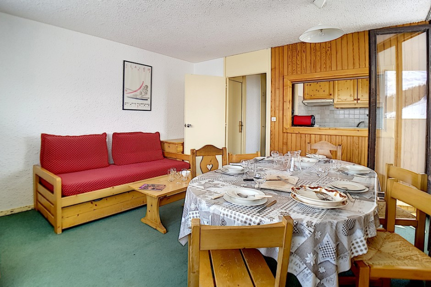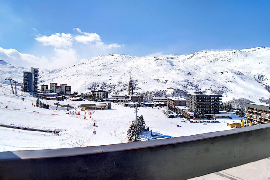 3-Zimmer-Wohnung 48m² für 8 Personen. Es befindet sich im 8. Stock mit Aufzug. Sie hat einen Balkon mit Südausrichtung und Blick auf die Pisten.