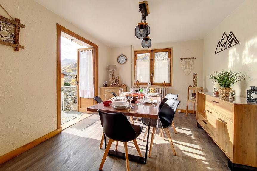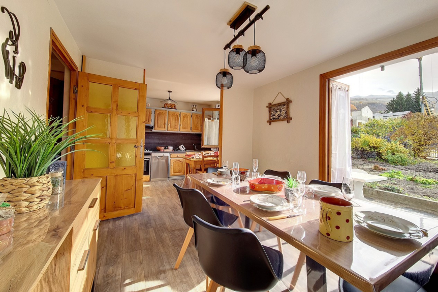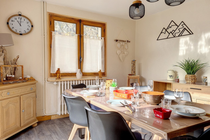 Esszimmer mit direktem Zugang zur Terrasse, die Blick auf den Cochet hat.