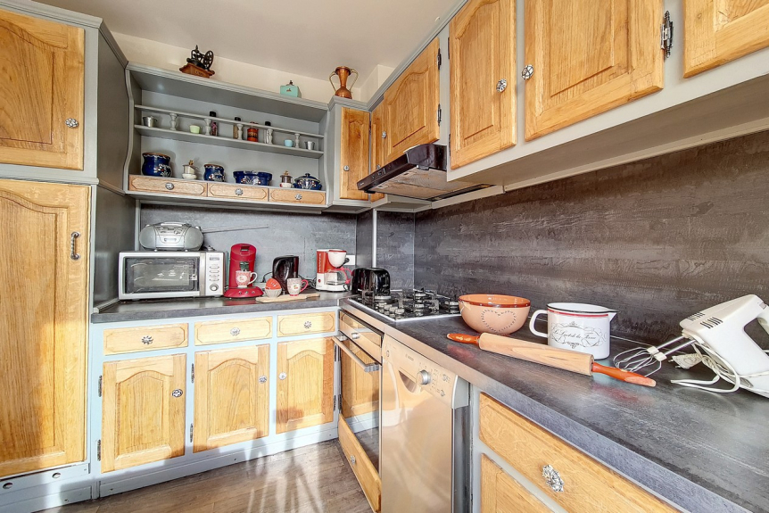 Separate Küche : 4-Flammen-Kochfeld , Backofen, Mikrowelle, Kühlschrank, Geschirrspüler, Wasserkocher, Toaster und Kaffeemaschine.