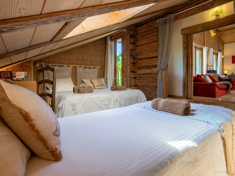 Dieses bezaubernde traditionelle Chalet kann maximal zehn Personen beherbergen. Es verfügt über fünf Schlafzimmer und vier Badezimmer. Die Unterkunft erstreckt sich über drei Etagen, mit gemütlichen Schlafzimmern und eleganten Badezimmern auf jeder Etage, was sie zu einer idealen Unterkunft für mehrere Familien macht.