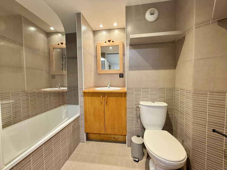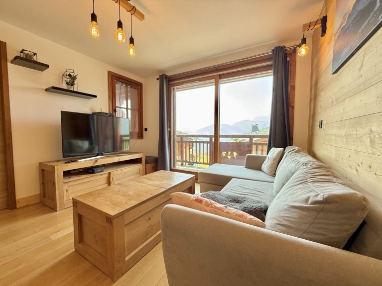 In Le Tovet, 5 Gehminuten vom Dorf entfernt und neben den Skipisten, 50m² große Wohnung im ersten Stock einer charmanten Residenz. Sein Balkon/Terrasse in SÜD/WEST-Ausrichtung bietet einen herrlichen Blick auf den Mont Charvin und die umliegenden Berge.