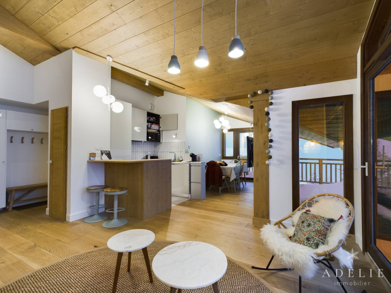 Residenz LES ALPAGES im Zentrum des Ortes, 200 m von den Skiliften und 80 m von der Kindertagesstätte Les Galopins entfernt. Renovierung/Bau im Jahr 2021.