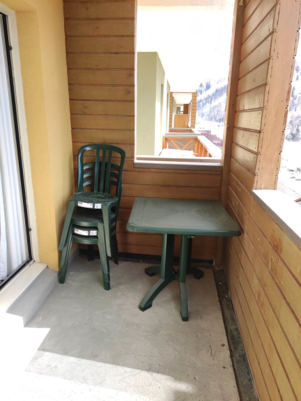 Balkon 7 m2 mit Blick auf den Nordhang und die Pisten.