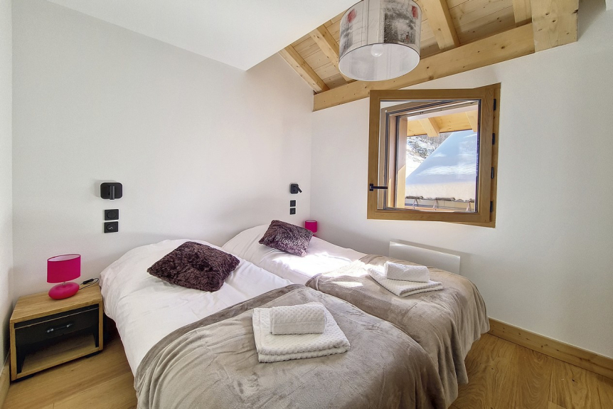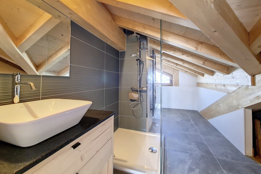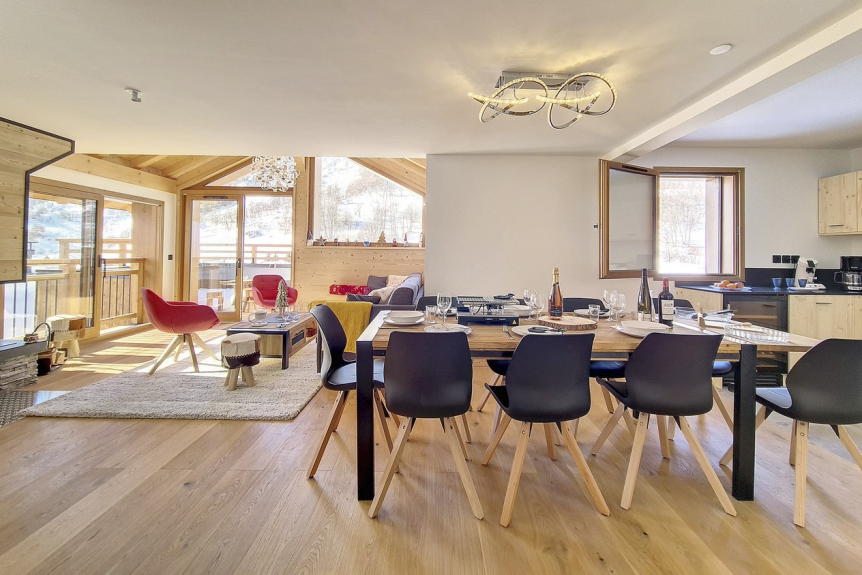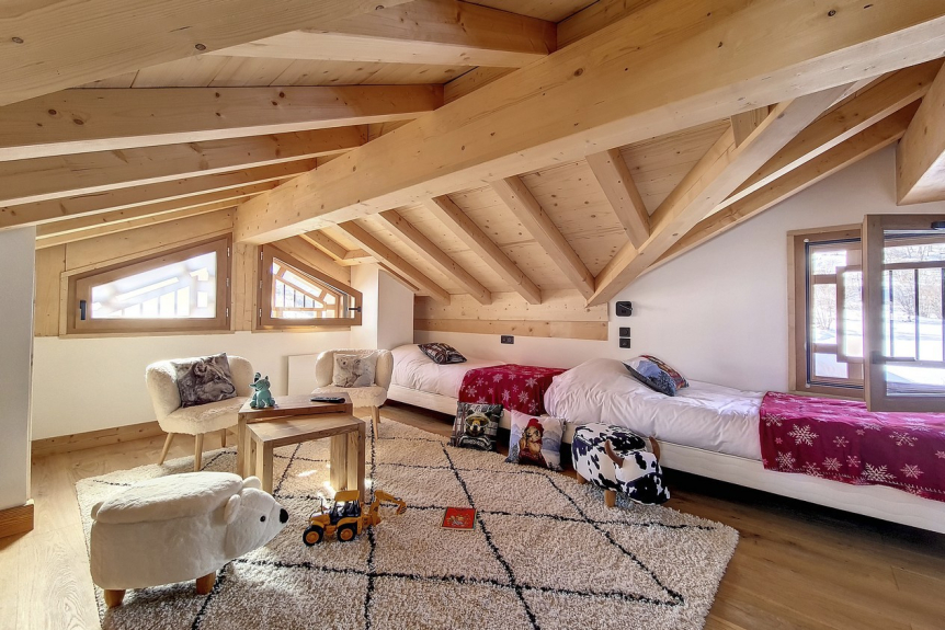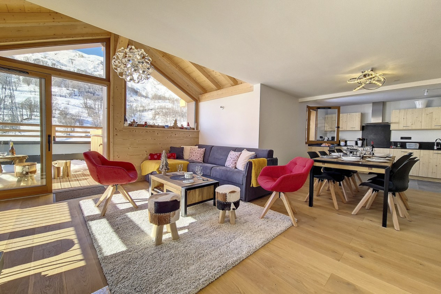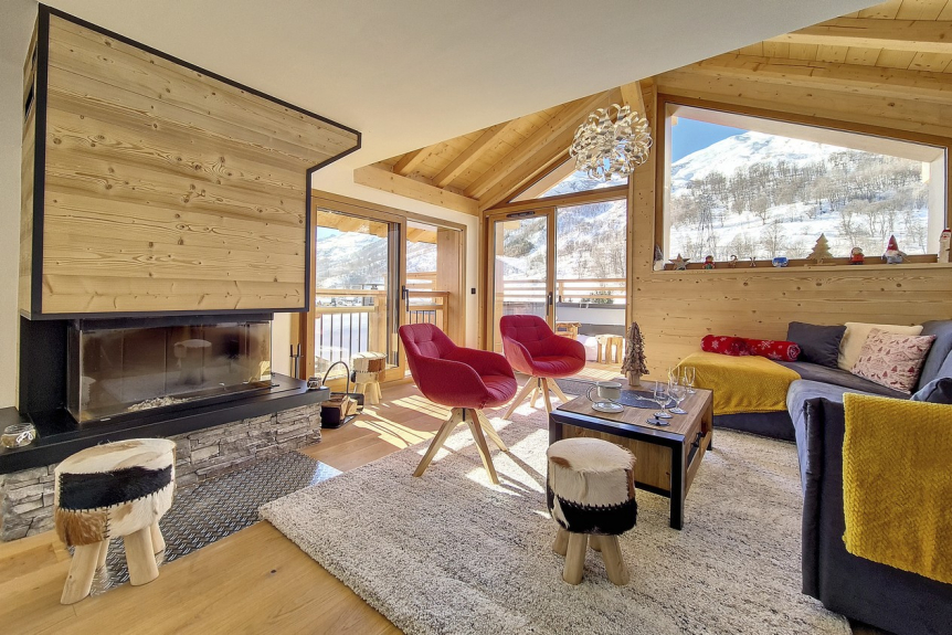 Mit einer Fläche von 138 m² erstreckt sich dieses Chalet "auf dem Dach" über 3 Etagen, die bis zu 10 Personen beherbergen können.
