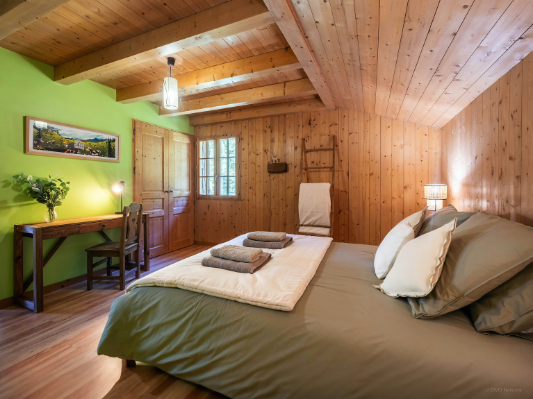 Im Inneren bieten die gemütlich eingerichteten Räume rund um das Wohnzimmer unvergessliche Momente der Geselligkeit, im Spielzimmer, an der Bar, in der Leseecke auf dem Zwischengeschoss oder im Fernsehraum.