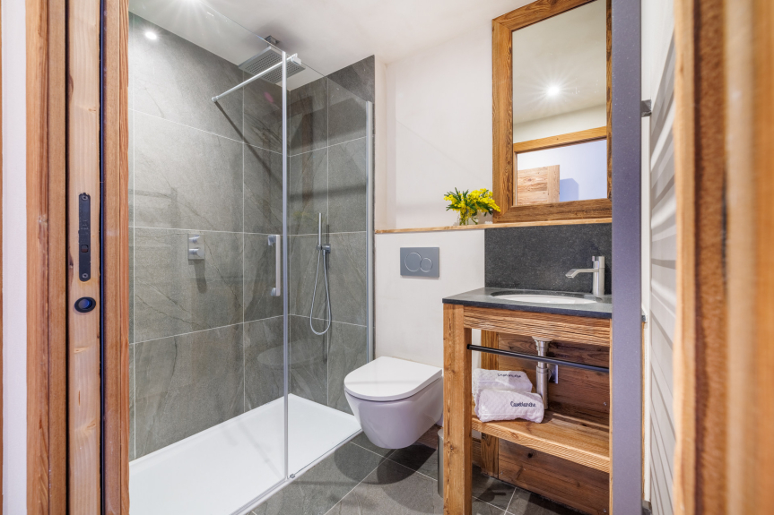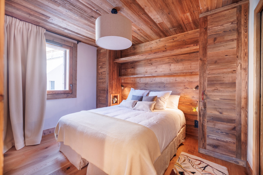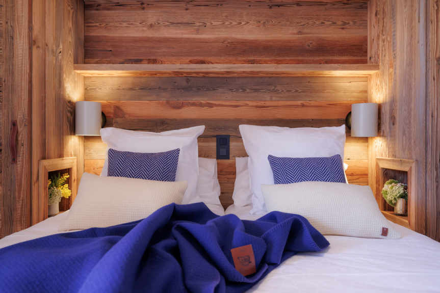 Die edelsten Materialien aus den Bergen (Altholz, Arpin-Wolle) werden mit modernen Einrichtungen kombiniert, um Sie in einem Kokon des Wohlbefindens zu empfangen.