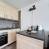 Einbauküche mit 2-Plattenherd, Backofen, Mikrowelle, Kühlschrank, Geschirrspüler, Toaster, Kaffeemaschine, Wasserkocher, Fonduegerät.