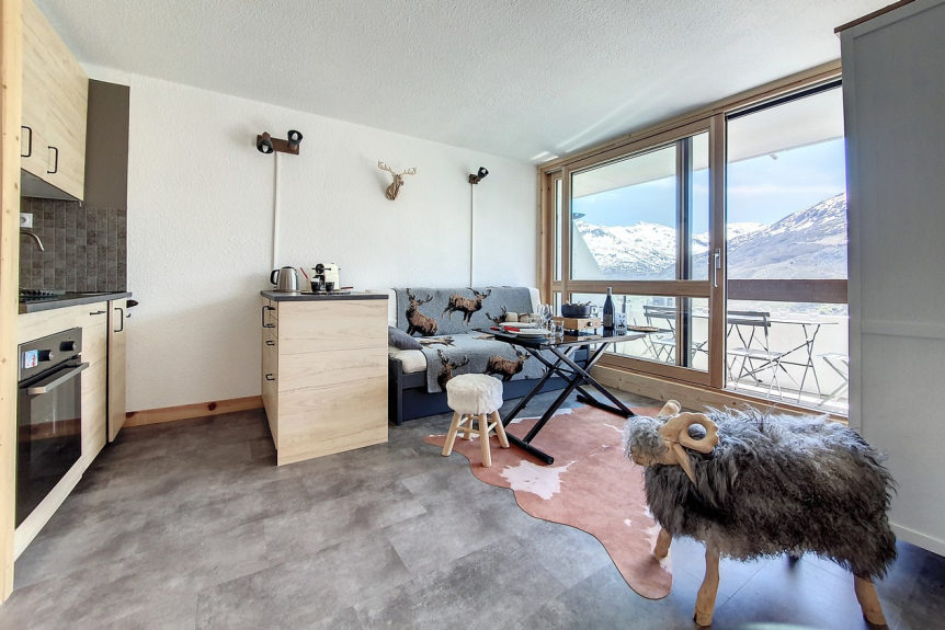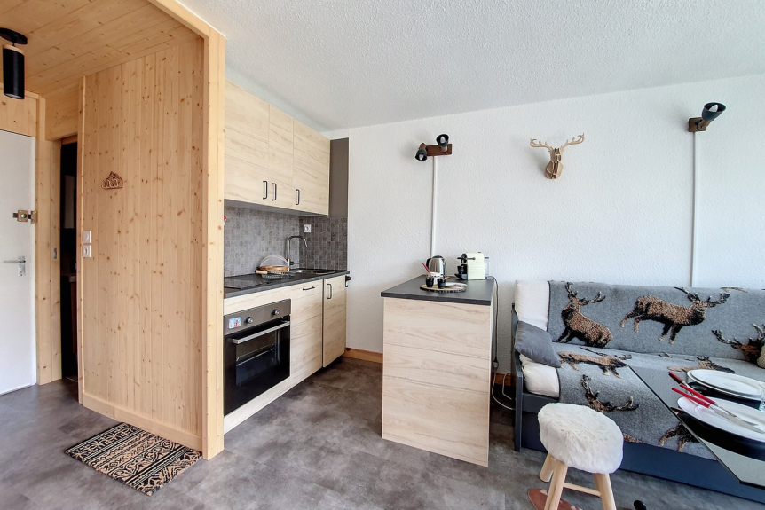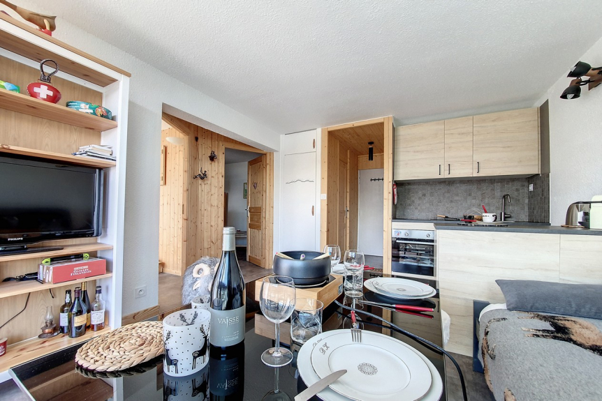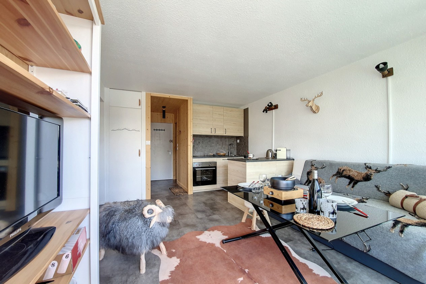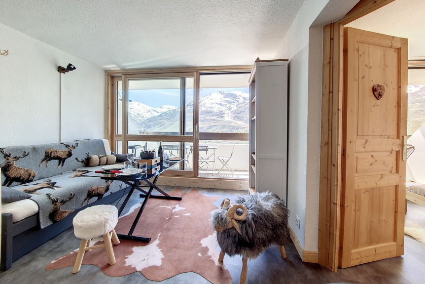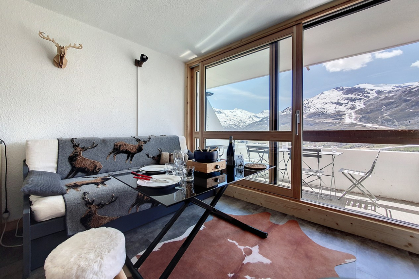 Das Brelin-Gebäude überragt den Ort Les Menuires und liegt oberhalb des Stadtteils La Croisette, der über öffentliche Aufzüge, die rund um die Uhr geöffnet sind, erreicht werden kann.