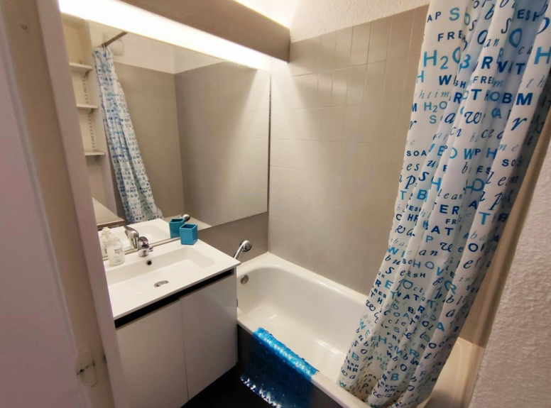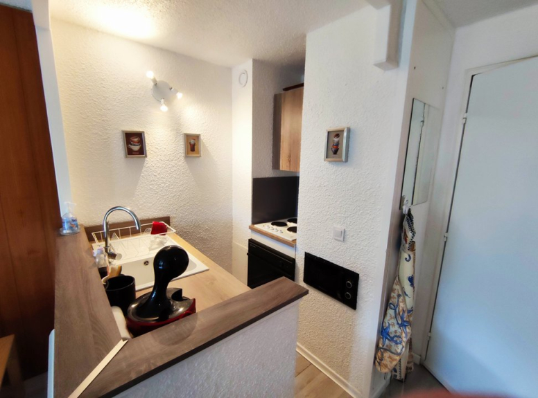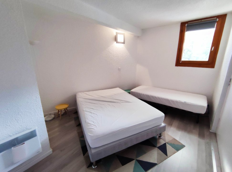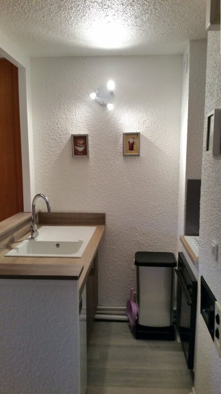 Renovierte 2-Zimmer-Wohnung im 5. Stock mit Balkon, nach Süden ausgerichtet. Gebäude im Hameau gelegen. Ausgestattet mit einem Schlafsofa (140 cm) im Wohnzimmer und im Schlafzimmer Bett 140 + Bett 90. Badezimmer und separates WC, voll ausgestattete Küche.