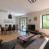 Einem großen Wohnzimmer mit einem Sofa und einem großen Flachbildfernseher.