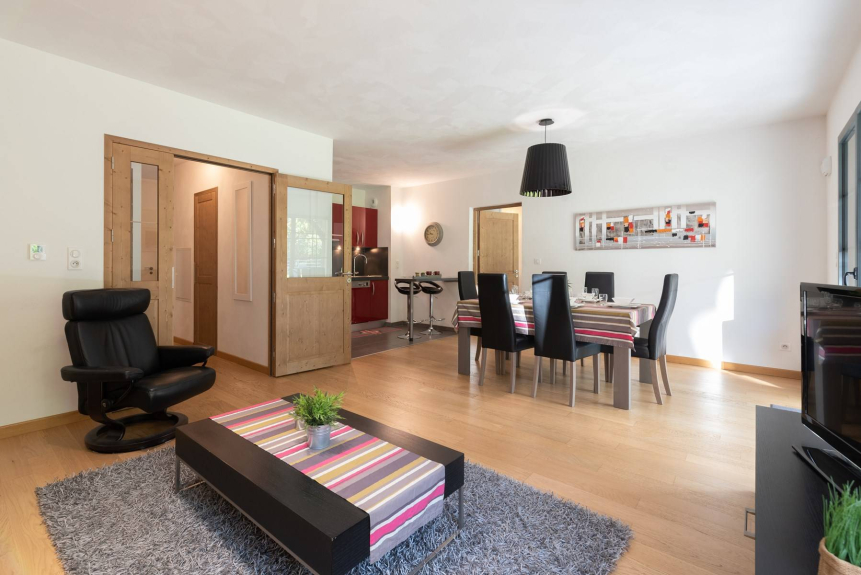 Diese schöne Wohnung befindet sich in der luxuriösen Residenz Le Petit Verger im Herzen des Dorfes im Erdgeschoss mit einer Fläche von 76.35 m2.