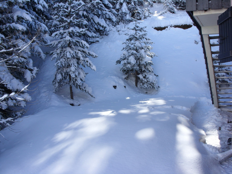LES EPERVIERES - Siedlung mit kleinen Chalets am Waldrand, die in 6 Wohnungen unterteilt sind. Die Chalets befinden sich im oberen Teil des Ortes, 400m vom Ortszentrum und der Abfahrt der Gondelbahn entfernt, unter der grünen Skipiste zurück zum Ort.