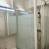 Badezimmer: Waschbecken, Dusche und integriertes WC