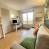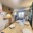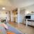 - Eine zum Wohnzimmer hin offene Einbauküche (Kühlschrank, Cerankochfeld, Dunstabzugshaube, Geschirrspüler und Mikrowelle).