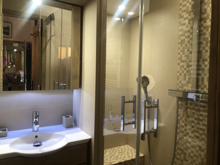 Badezimmer mit Dusche und separatem WC.